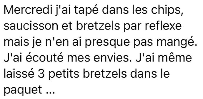 Commencé à repérer les prises alimentaires automatiques, et à y mettre de la conscience.