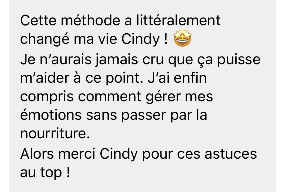 Dans ce cas, je te recommande plutôt de découvrir le programme [15 mini-victoires – spécial comportement alimentaire], pensé spécifiquement pour t’aider à réguler ton comportement alimentaire avant de t’attaquer aux émotions. Ça te permettra d’avancer dans le bon ordre, avec plus de clarté et moins de confusion.