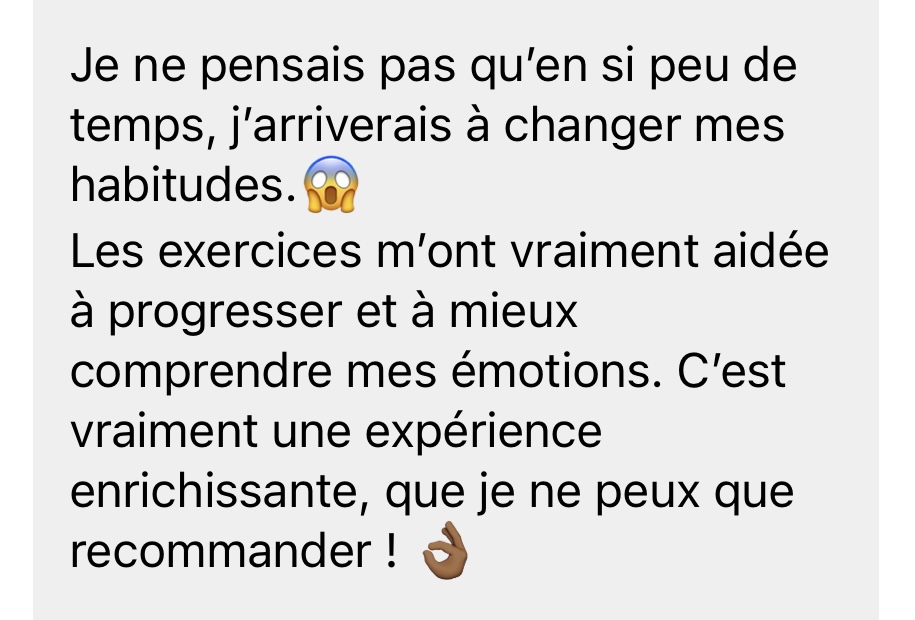 Tu vas sûrement mettre en lumière des besoins ou des blocages que tu pourras ensuite approfondir avec un psy si besoin. Et l’avantage, c’est que tu sauras plus clairement ce que tu ressens, ce que tu vis, et ce sur quoi tu as besoin d’aide.