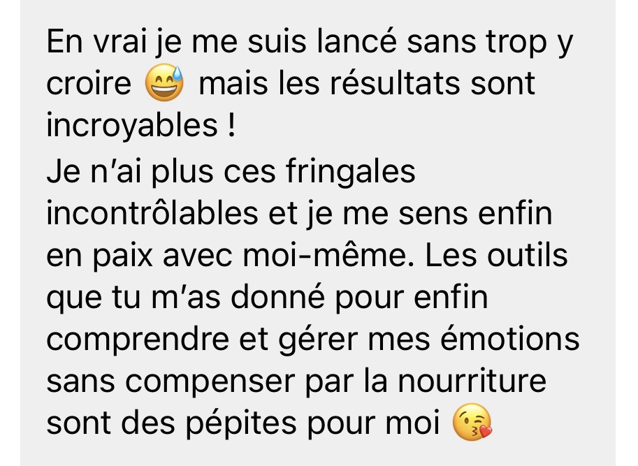 Ce programme n’est pas là pour “t’empêcher de manger”, mais pour t’aider à retrouver un vrai choix, une vraie liberté - même quand l’émotion monte.