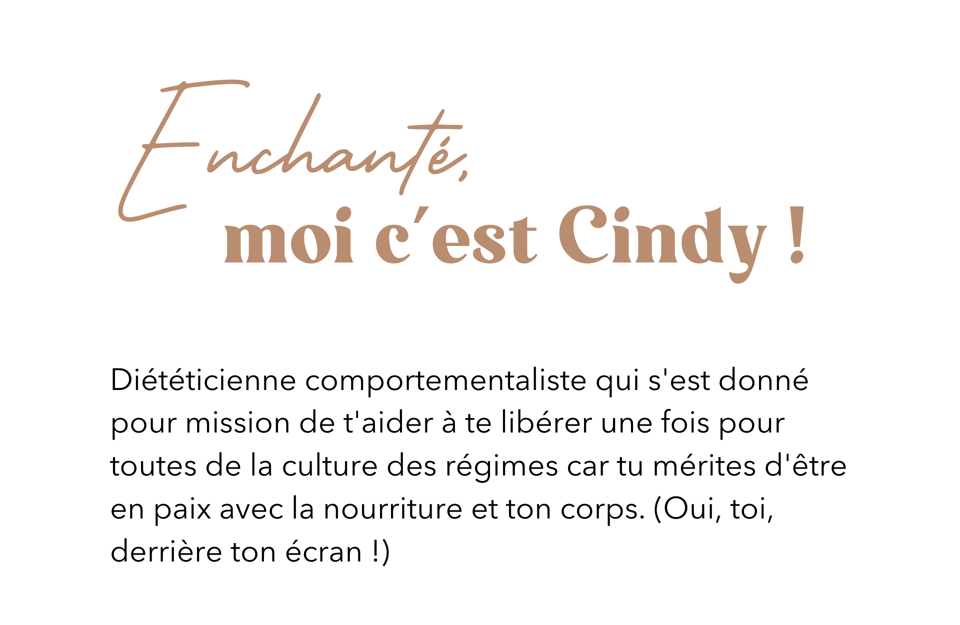 J'ai commencé en me disant qu'il suffisait simplement de lâcher prise et d'enlever les restrictions. En quoi ça pourrait être plus compliqué ? Et bien, je te confirme que ça ne fut pas un parcours de santé parce que c'est VRAIMENT plus technique que ça en a l'air ! Mais avec le temps, des outils adaptés et beaucoup d'expériences parfois fructueuses d'autres fois moins, j'ai finalement retrouver un rapport sain à la nourriture.